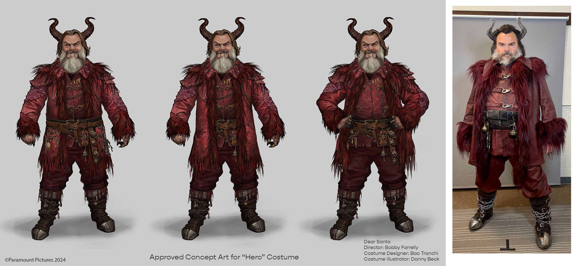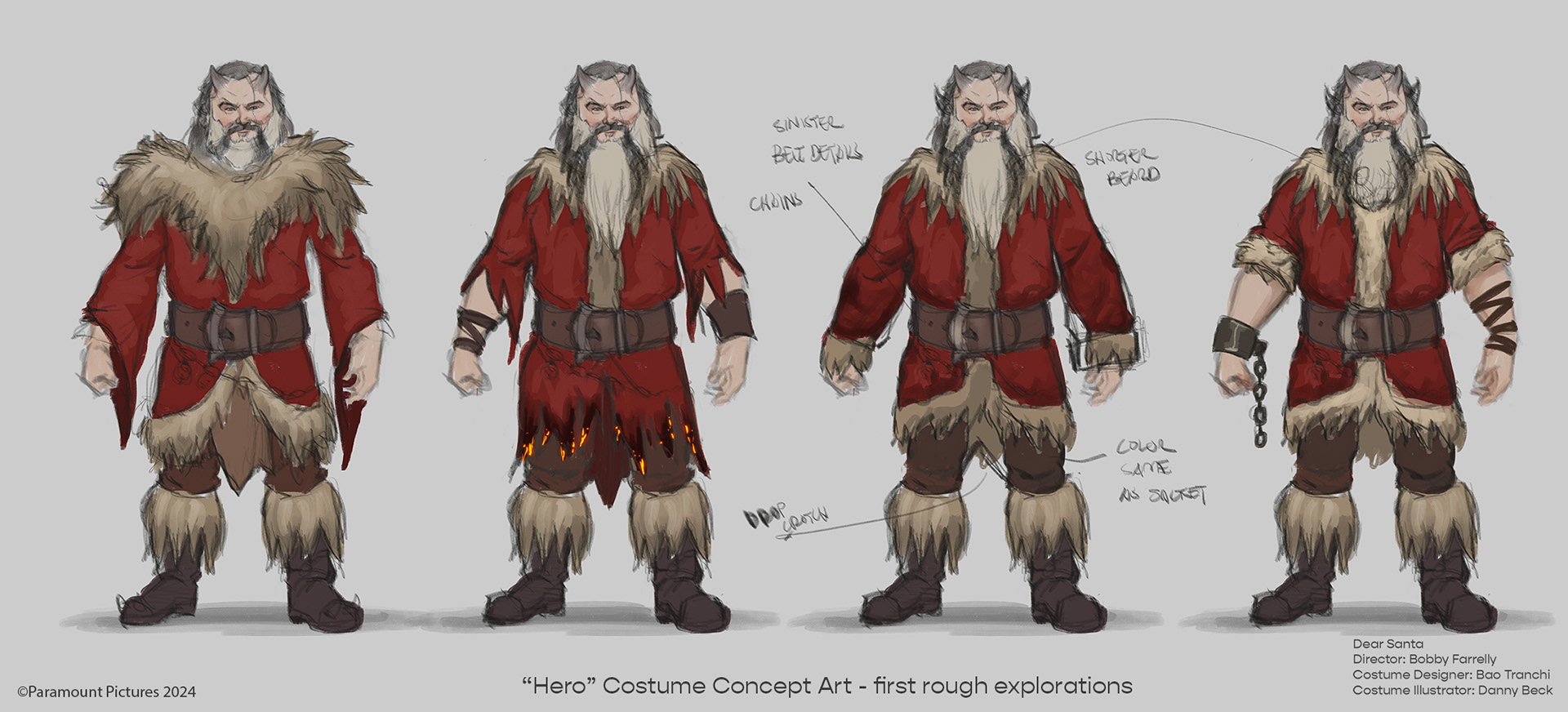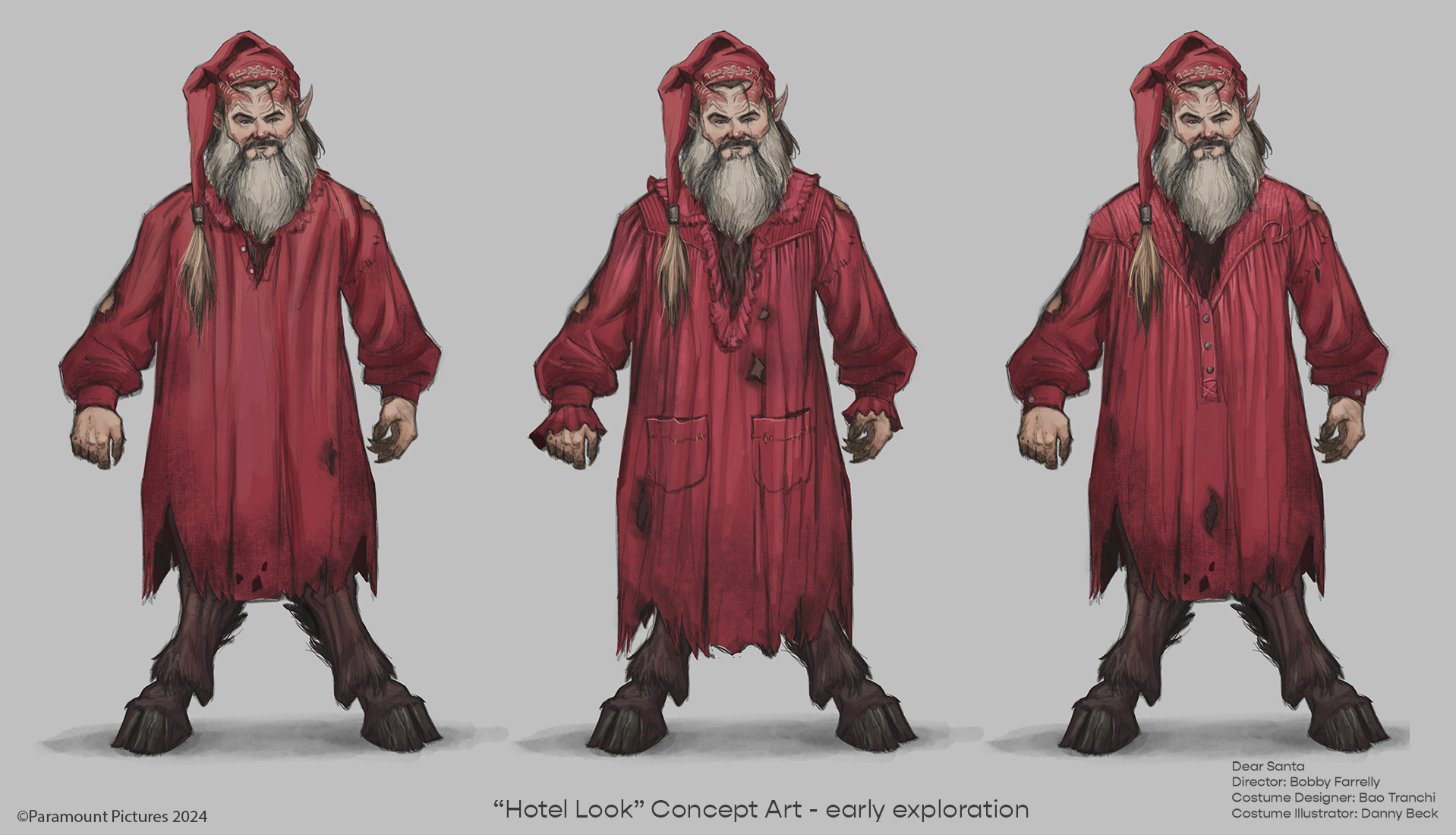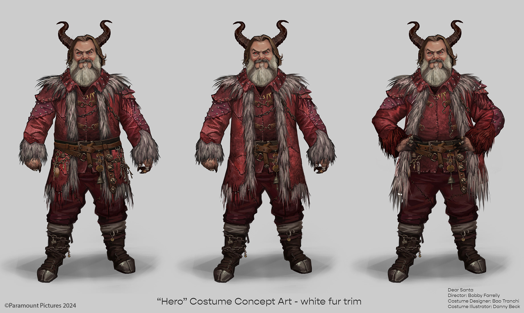 I had the privilege of working with esteemed costume/fashion designer Bao Tranchi on this, my first, movie production. Jack's main costume needed to look vaguely similar to Santa Claus's traditional outfit