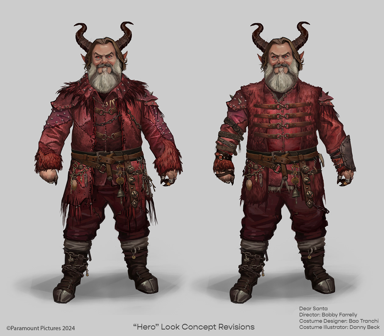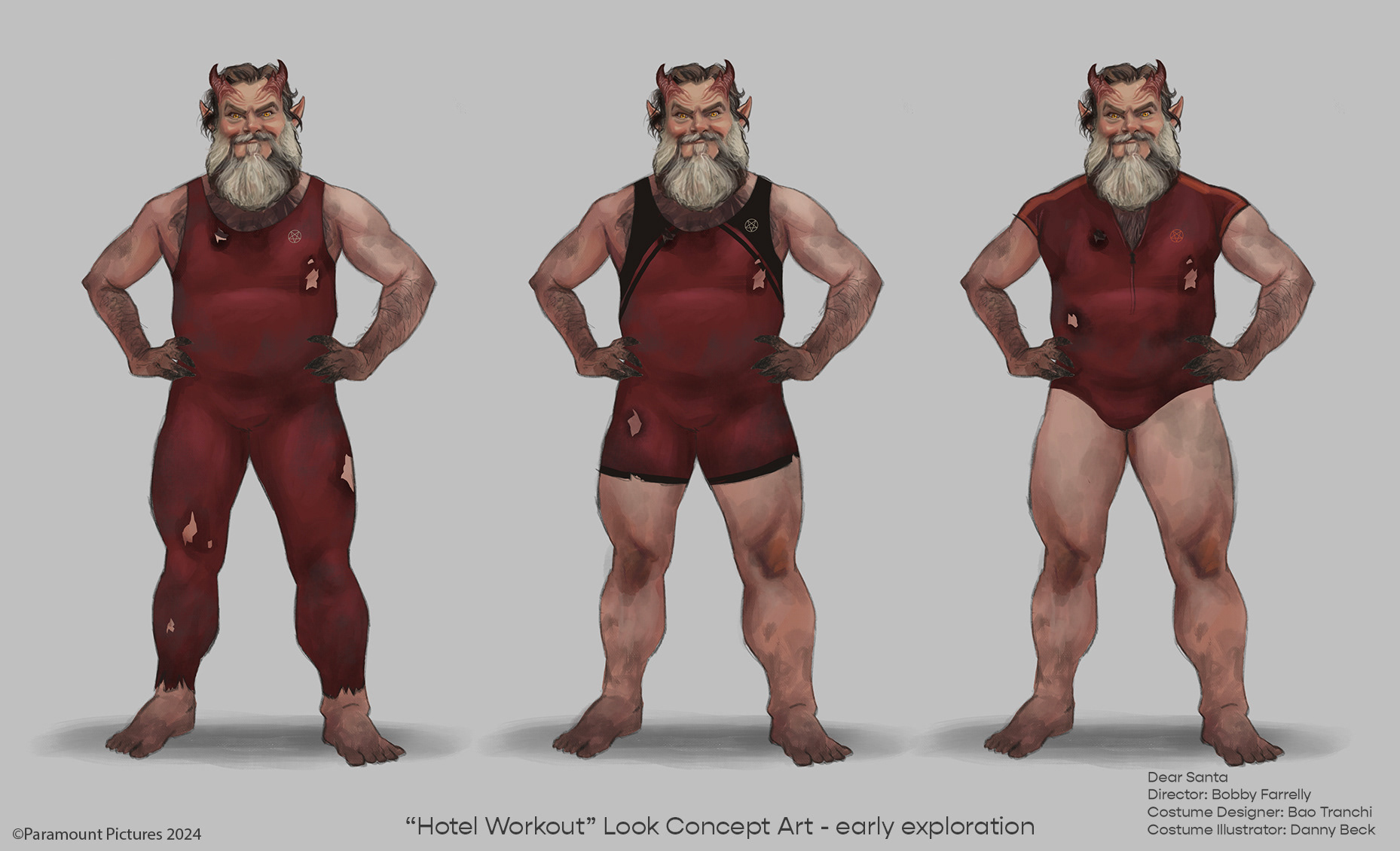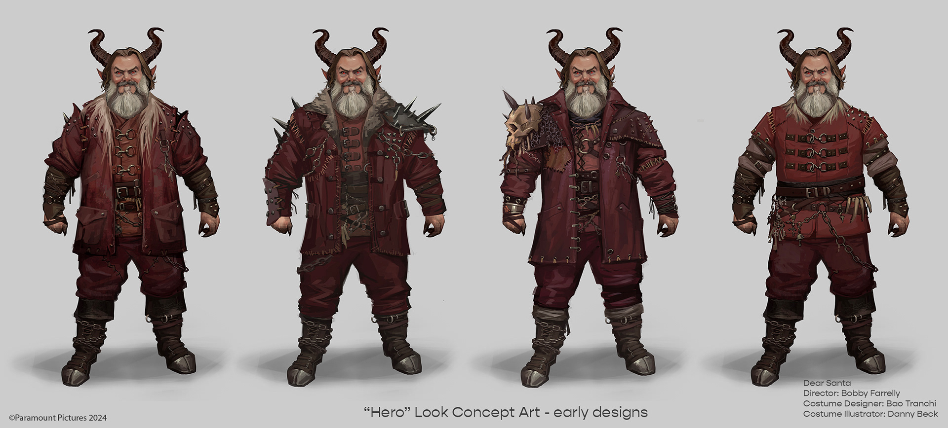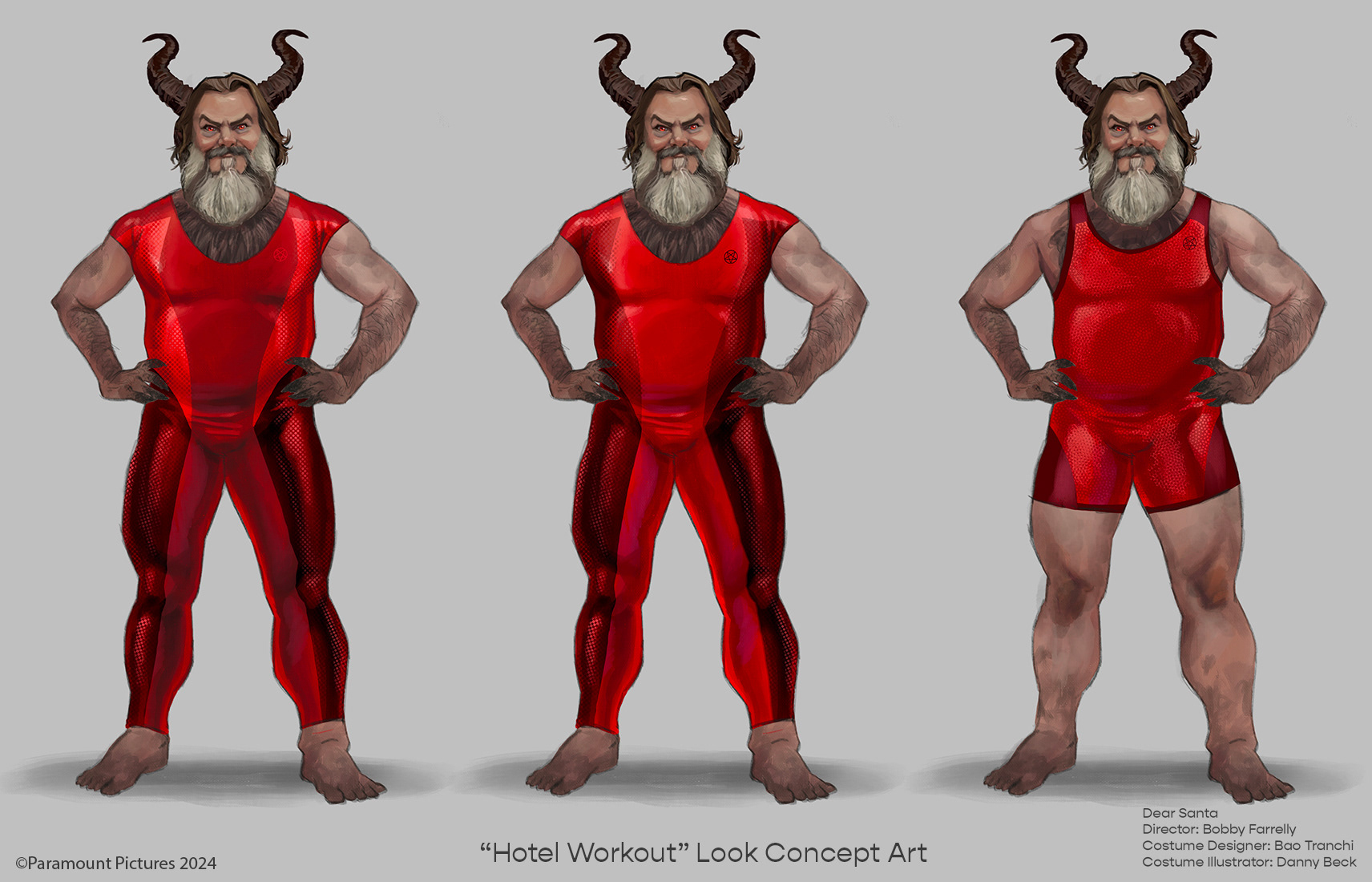 I had the privilege of working with esteemed costume/fashion designer Bao Tranchi on this, my first, movie production. Jack's main costume needed to look vaguely similar to Santa Claus's traditional outfit